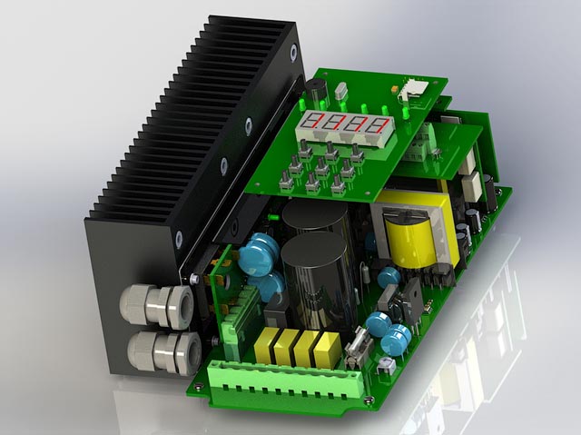 A frequency converter with power up to 4 KW developed from scratch. R&D included special test benches design and specific power electronics testing. The final frequency converter reached IP67 protection level.